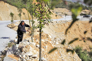 杨碎弟时常一个人跑到盘山公路查看沿途香樟的生长情况。