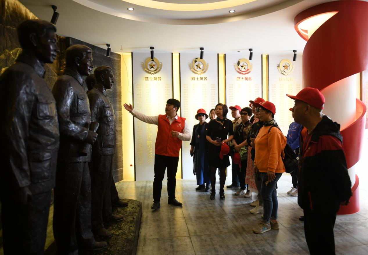 老党员们参观南山头红军挺进师五岱山活动纪念馆。李士明 摄
