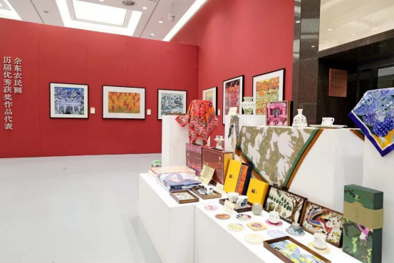 6月8日,来自衢州市柯城区余东村20余位农民画家创作的100件农民画作品和30余款文创衍生产品,一同亮相浙江展览馆“感恩共产党 描绘新时代”庆祝中国共产党成立100周年余东农民画展。