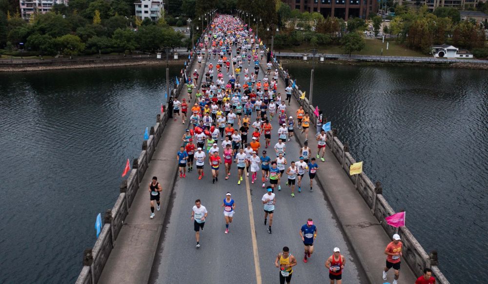 新安江;徐昱;参赛运动员;无人机;白沙;大桥;奔跑;记者;市民群...