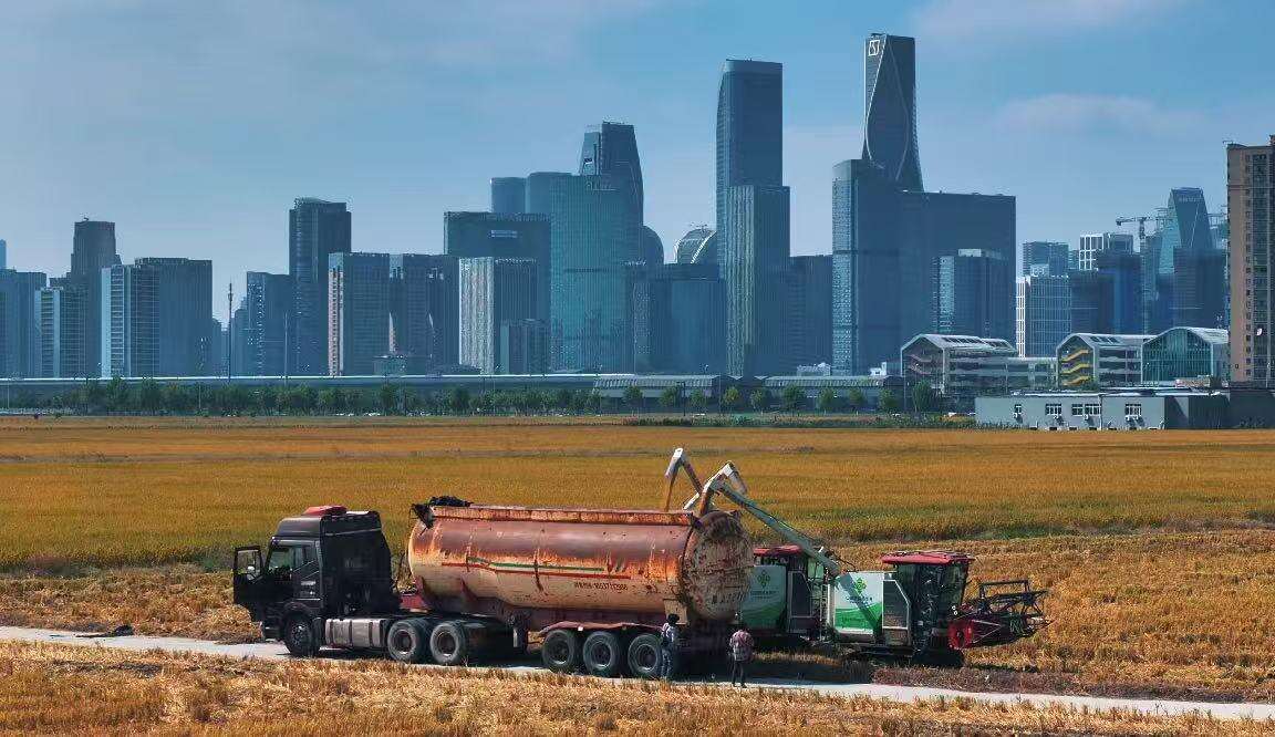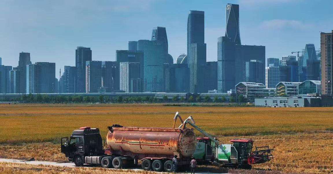 在小麦丰收之后,火爆全网的杭州钱江世纪城“麦田CBD”开始耕田种水稻了。