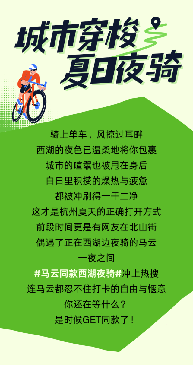 11公里的骑行环线浓缩了西湖“一半山水一半城”的夜间精髓——杨公堤的动感、南山路的浪漫、北山街的厚重皆在轮下流转。