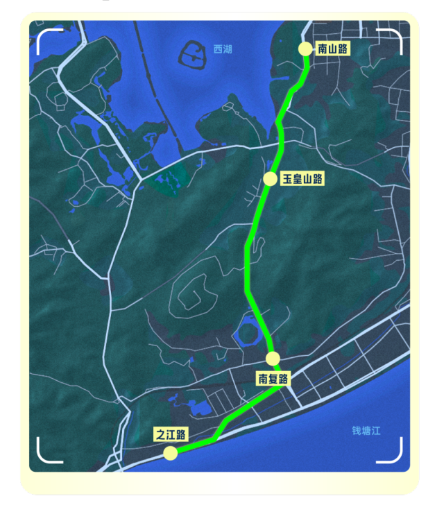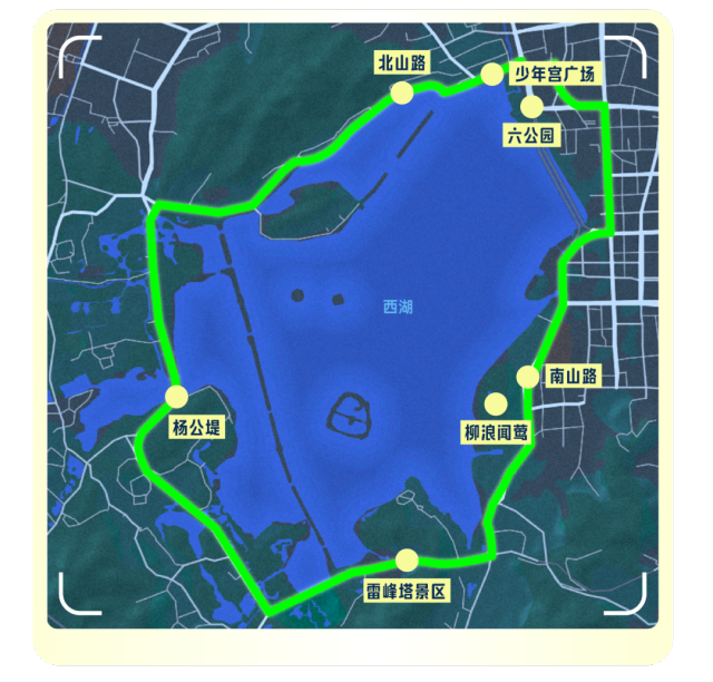 少年宫→北山街→杨公堤→雷峰塔→南山路→柳浪闻莺→六公园