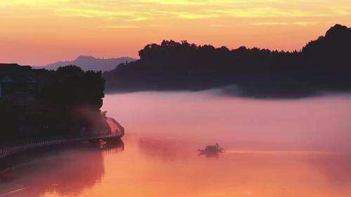 晨雾中的建德下涯镇之江村,美若山水画卷。