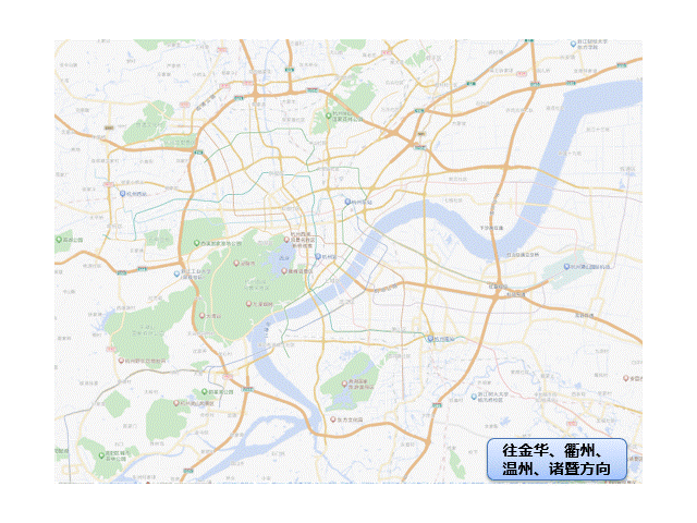1. 秋石高架路——西兴大桥——风情快速路——彩虹快速路——萧山东收费站——杭金衢高速。