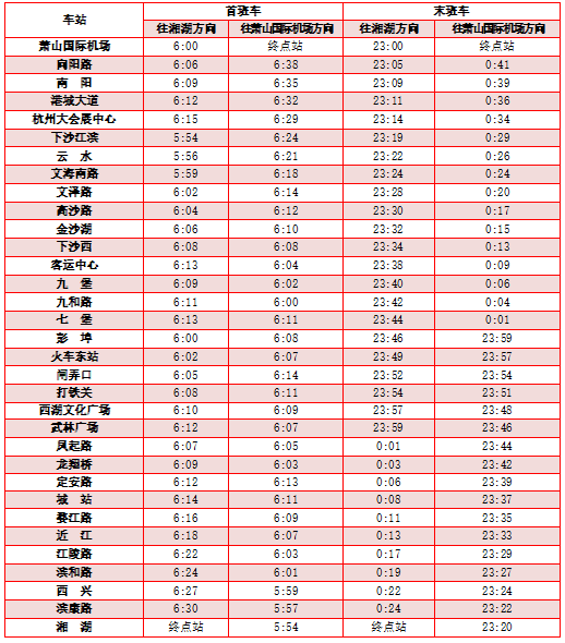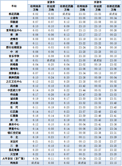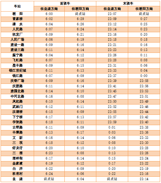 3号线首末班车时间