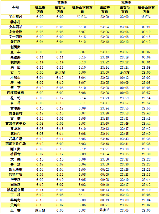 6号线首末班车时间