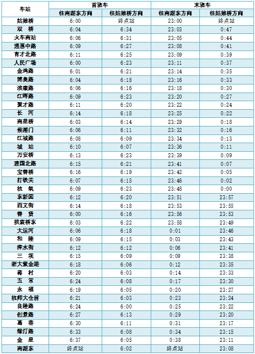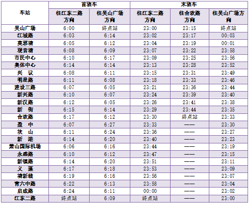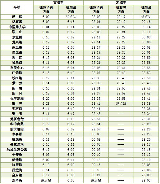 2号线首末班车时间