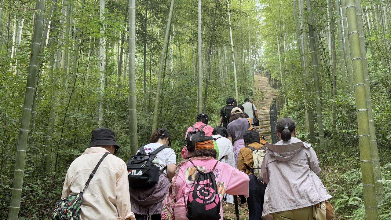 竹林、阳光、登山杖,是一方面,听到她们讨论“剧本杀局约在什么时间”、“哪家咖啡馆的拿铁最香”,看到她们为了出片,耐心寻找拍摄角度时,某种关于年龄的刻板印象,如同林间的薄雾,悄然散去。