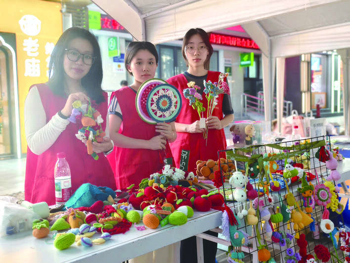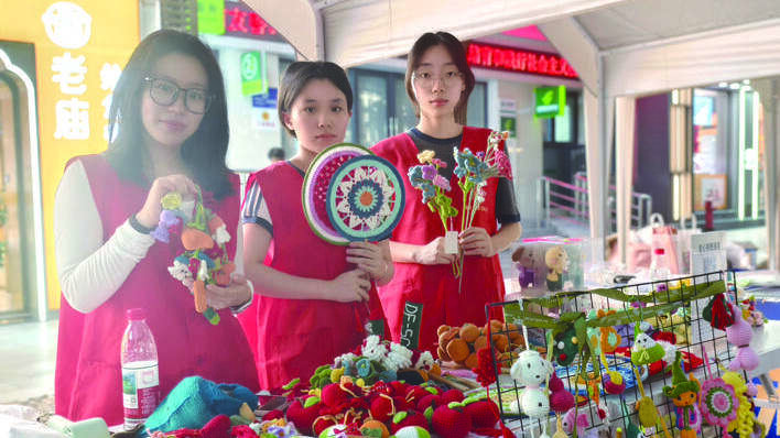 在社区工作人员的引导下,“玉兰友邻”编织队的队员们有负责设计编织品款式的,有负责质检确保每件作品针脚紧密的,有拍摄作品图集的。国庆假期,志愿者在共富市集上专门设置手工义卖区域,队员们的作品受到市民欢迎。“这些手工编织作品精美且有心意,我们既能买到心仪之物,又能参与社区公益,一举多得。”市民陈女士选了一把扇子开心地说。