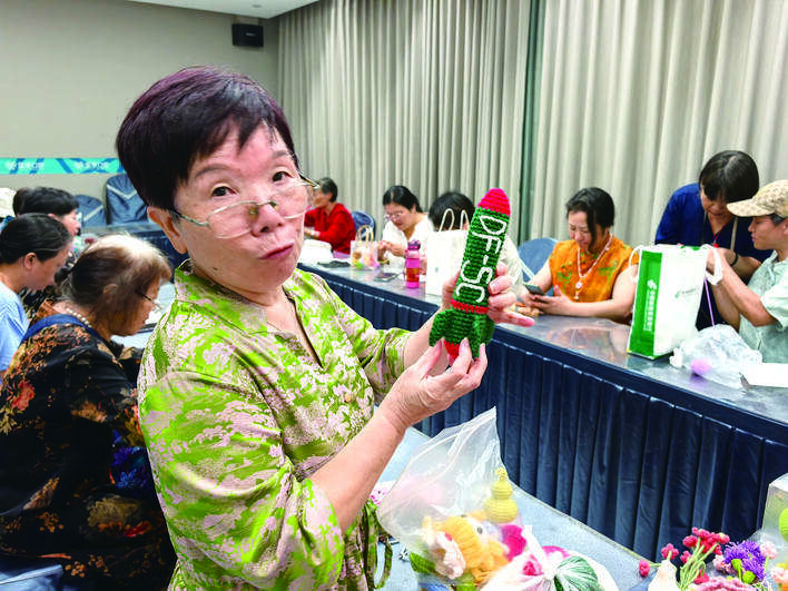上周一,在何金燕的耐心指导下,新学者认真练习短针、长针等基础针法,钩织起了“小葫芦”,熟练的队员则挑战起“柿子”“花朵”“红旗扇子”等美观又富有意义的作品。现场氛围热烈而专注,针线穿梭间,欢声笑语不断。在交流环节中,队员们分享经验,彼此帮助、互相鼓励,原本不太熟悉的邻居成了志同道合的“织友”。