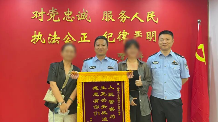 近日,温州动车南站西出站口上演了一幕暖心又惊险的救援场景。温州市公安局经侦大队民警黄河和永嘉县公安局经侦大队民警周达与在结束跨市办案返程途中,偶遇一名女孩晕倒、疑似心跳骤停,二人迅速出手,通过心肺复苏成功挽回女孩生命。康复后的女孩在母亲陪同下,专程来到公安机关,将锦旗送到了周达和黄河手中,以此表达最诚挚的谢意。