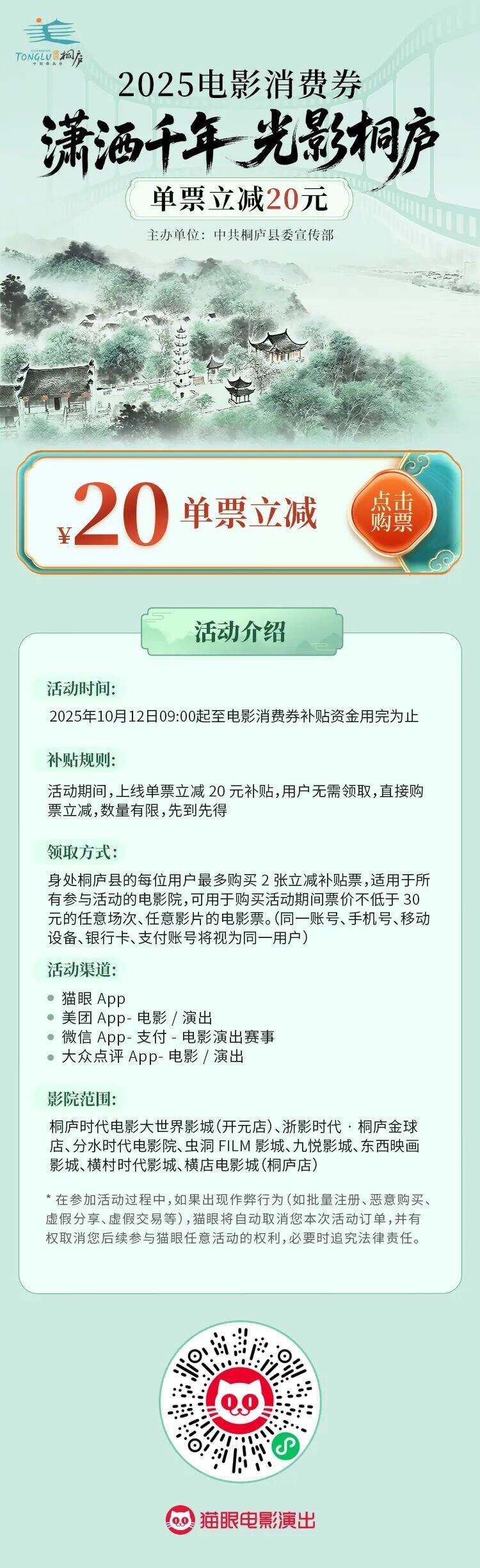 好消息:杭州余杭区、桐庐县发放新一轮消费券,逛良渚文创市集、看电影可以用!如何领取?一起来看!