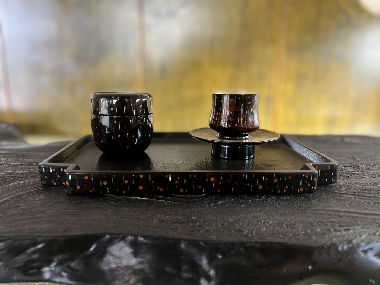 在良渚暖村一座竹篱笆围起的小院前,陈俊带领记者走进了他的工作室。展架上,各种流光溢彩、兼具古韵与现代感的漆艺作品,小到茶杯、手链,大到屏风、茶桌,或古朴或现代,无一不让人眼前一亮,想不到漆器竟可以做出如此多变化。