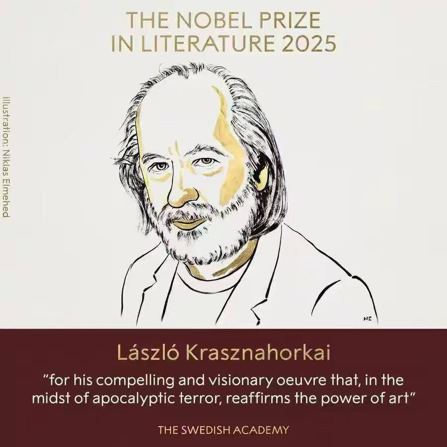 “他那富有感染力与远见卓识的作品,在末日般的恐惧之中重申了艺术的力量。”北京时间10月9日晚,瑞典文学院将2025年诺贝尔文学奖授予匈牙利作家克拉斯诺霍尔卡伊·拉斯洛。