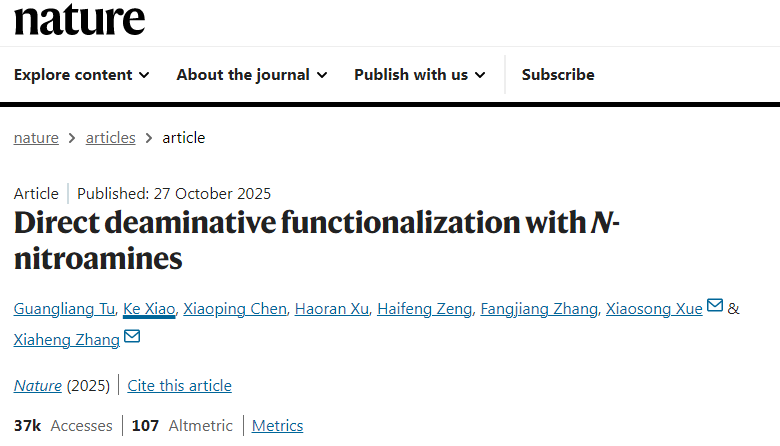 北京时间10月28日凌晨,中国科学院大学杭州高等研究院张夏衡团队的最新研究成果——“Direct deaminative functionalization with N-nitroamines(N-硝基胺介导的直接脱氨官能团化)”上线国际顶刊《自然》。