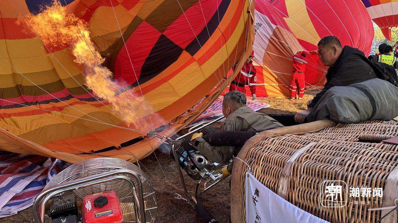 飞行员正在往热气球里喷火充气。记者 张源 摄