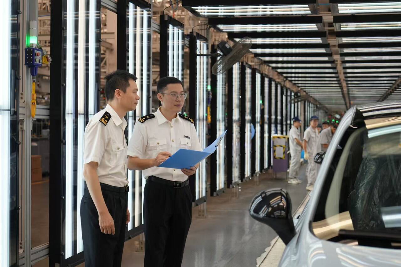 海关监管新能源车出口。受访对象供图。
