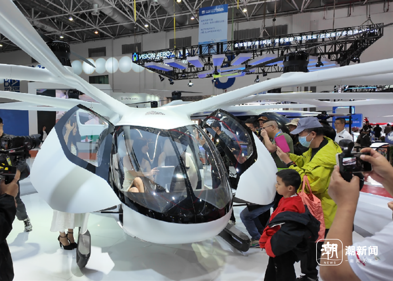 观众参观万丰奥特控股集团的电动垂直起降器。记者 周旭辉 摄