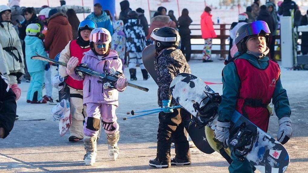 滑雪场内人潮涌动,售票处熙熙攘攘,蓝天与雪山交相映衬,雪道上,矫健的身姿伴随着爽朗的笑声——上周,新疆阿勒泰地区的中小学生们度过了他们的首个“雪假”。