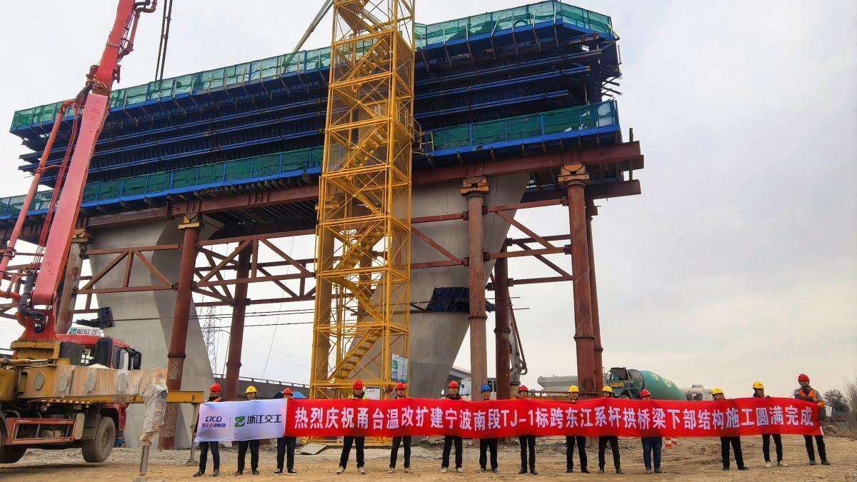 12月13日,随着左幅161#盖梁最后一方混凝土浇筑完成,浙江交通集团甬台温高速改扩建宁波南段关键控制性工程——东江系杆拱桥下部结构圆满完成,标志着项目建设实现重要阶段性突破,为后续主桥上部结构钢梁施工全面铺开按下了“加速键”。