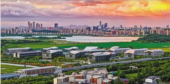 从南湖眺望杭州城市新中心中轴线风光。 拍友 施炫森 摄 余杭区委宣传部供图
