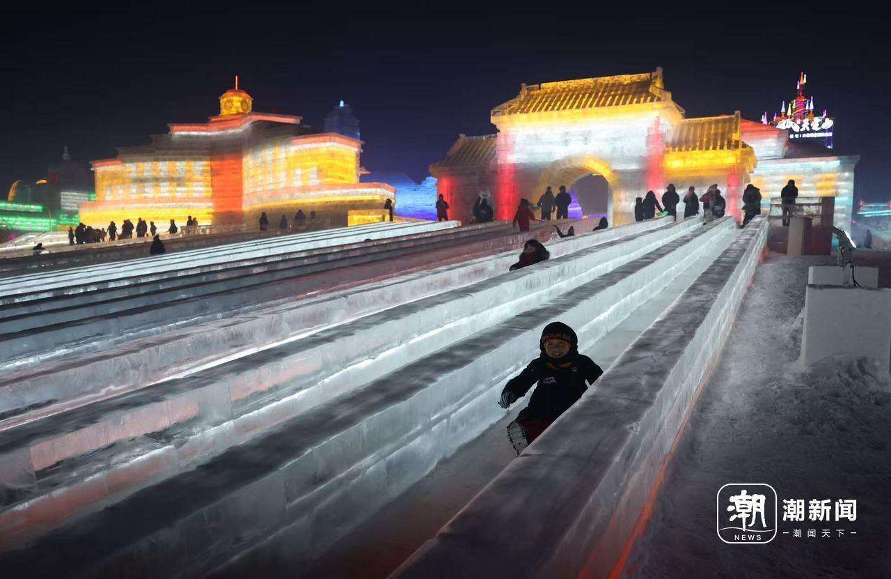 12月27日,长春冰雪新天地,游客体验冰滑梯。园区当天入园人数破万,其中有不少来自浙江等地的南方游客。记者 王建龙 摄