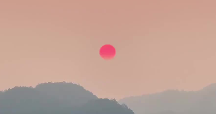 杭州市临安区城西的“悬日”景观,展示了从暮色到落日的壮丽景色,以及落日与山影的美丽交融。