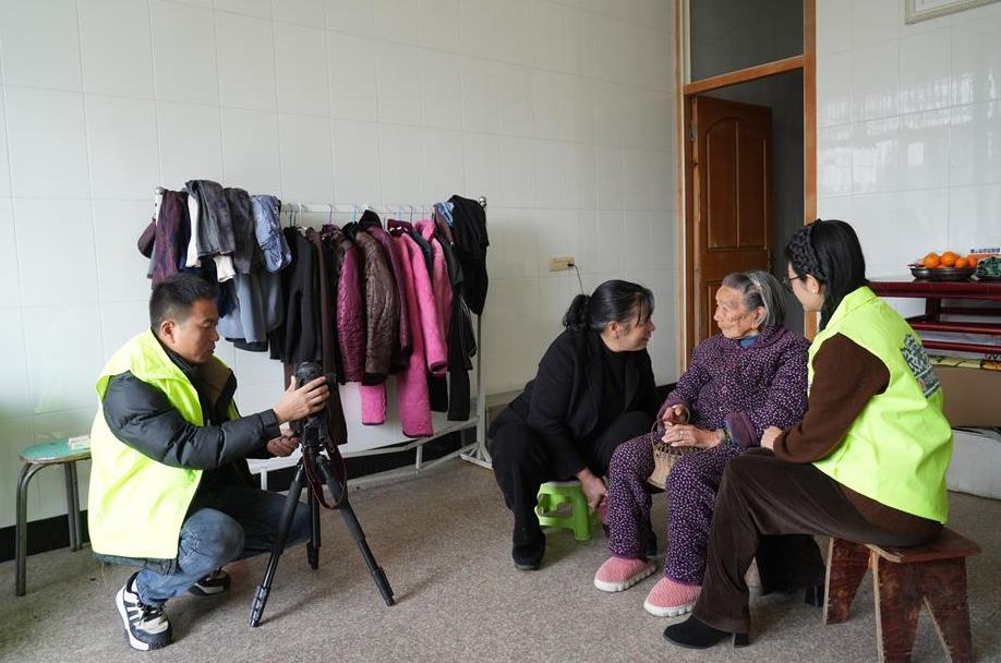 上午九点多,带着摄像、录音等器材的志愿者队伍赶赴文成县铜铃山镇铜铃村偏远山区,探访104岁高龄的刘花梅老人。志愿者们轻手轻脚架设设备,耐心陪老人拉家常。在轻松的氛围里,镜头细腻捕捉老人晚年生活的平和惬意,也定格下村民们对这位长寿老人的关爱与敬重。