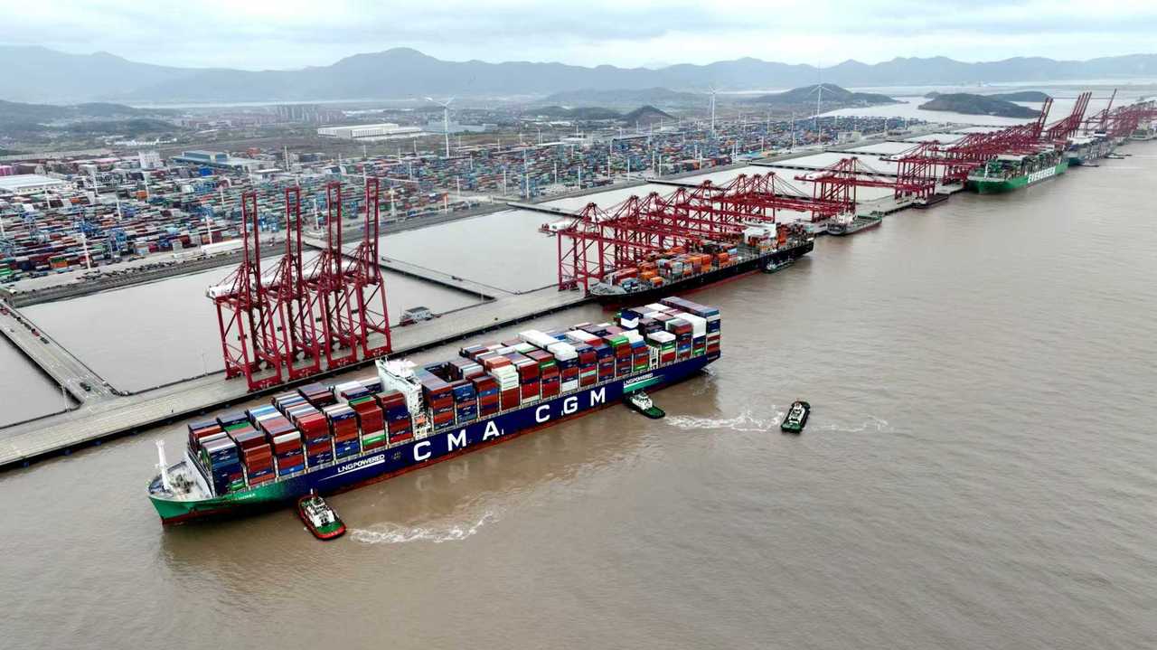2025年,梅山港区吞吐量再创新高。“2025年,梅山港区集装箱吞吐量累计1319万标准箱,同比增长17.9%。”宁波梅东集装箱码头有限公司相关负责人说。