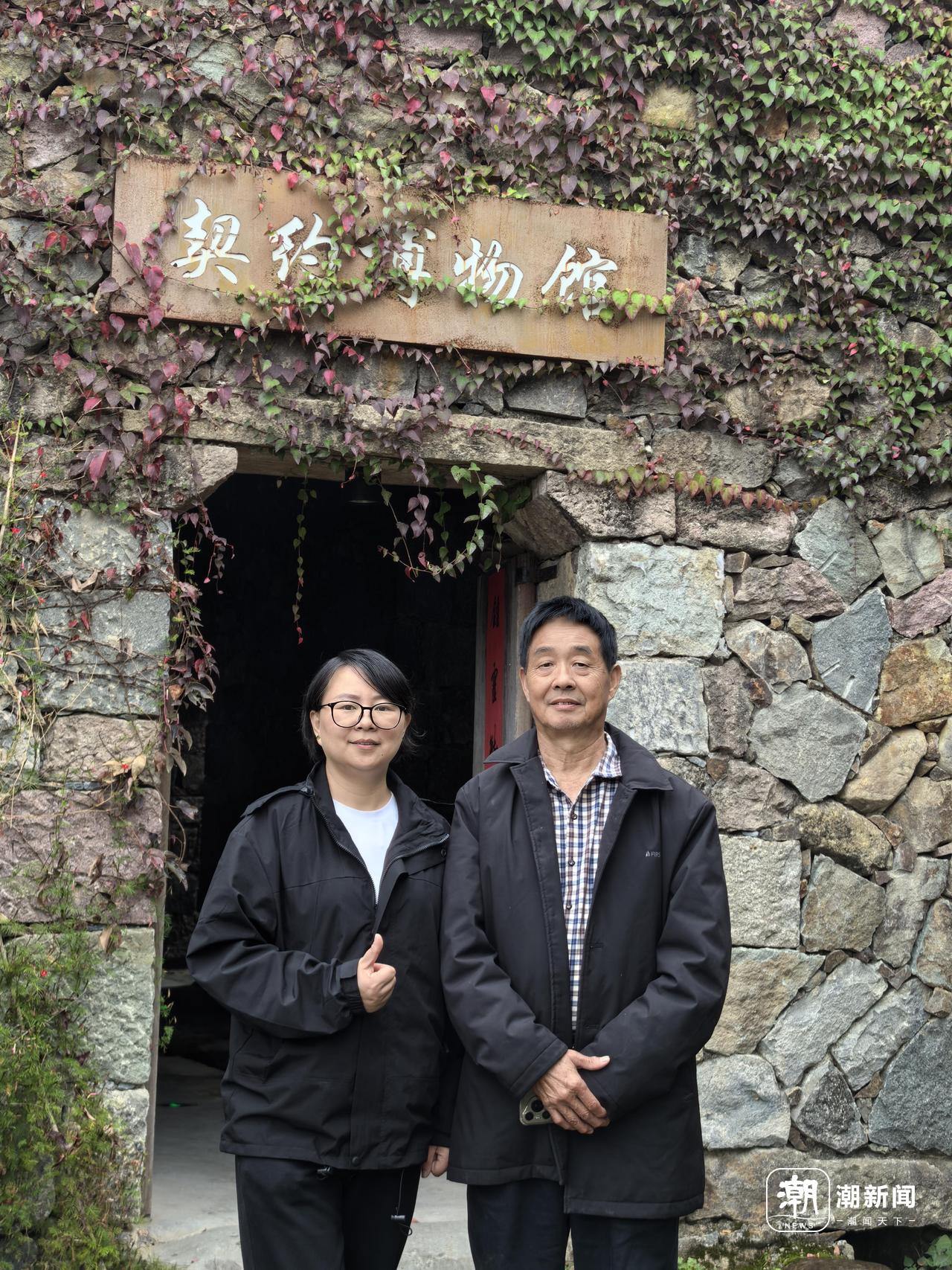 阙龙兴(右一)与石仓契约博物馆。 受访者供图