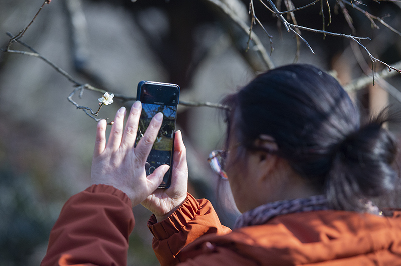 记者在植物园梅园看到,不少市民循着淡淡花香漫步其间,或驻足凝视,或举着手机、相机拍摄枝头景致。来自富阳的刘阿姨一边兴冲冲地向记者展示自己拍摄的梅花照片,一边笑着说道,“现在正是寻梅的好时候,这种慢慢寻找的过程特别有乐趣。”