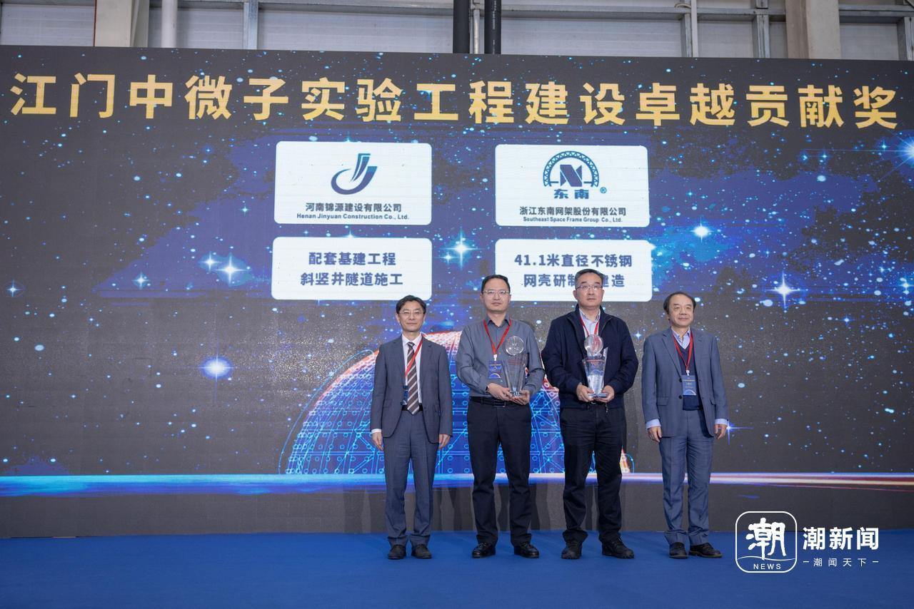 2026年1月18日,江门中微子实验(JUNO)工程建设总结会在广东江门召开。会议回顾了JUNO项目从2008年提出实验设想,到2013年立项启动建设,再到2025年装置建成和首个成果产出的17年奋斗历程,系统总结了在协同攻关中实现的多项关键技术突破,并对参建单位进行了集中表彰,受表彰单位包括了浙江东南网架股份有限公司、浙江华帅特新材料科技有限公司、浙江大学特种装备研究所等。这些单位在JUNO主体结构、关键部件与核心方案设计中作出了重要贡献。