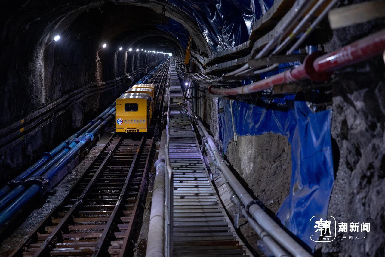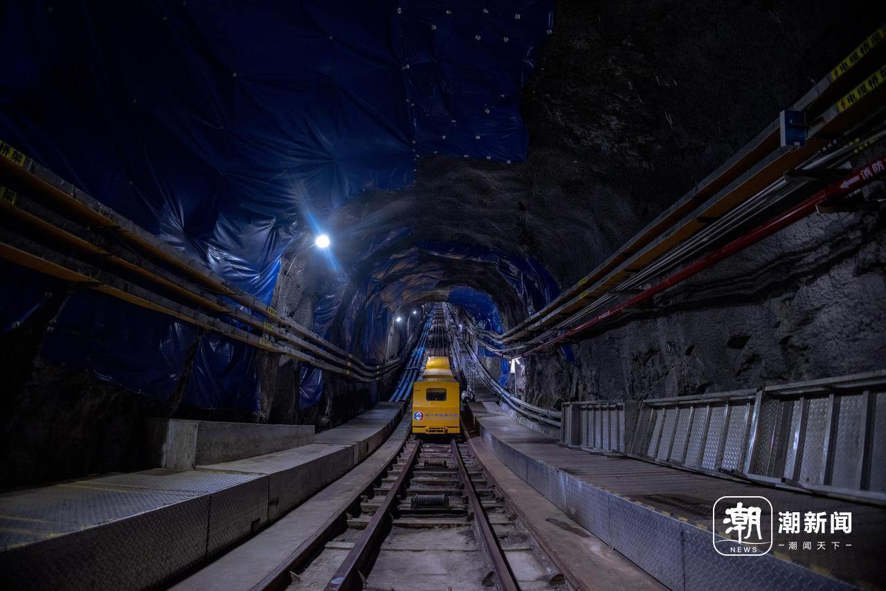 700米深的地下实验室通过1200多米长的斜井轨道来往。