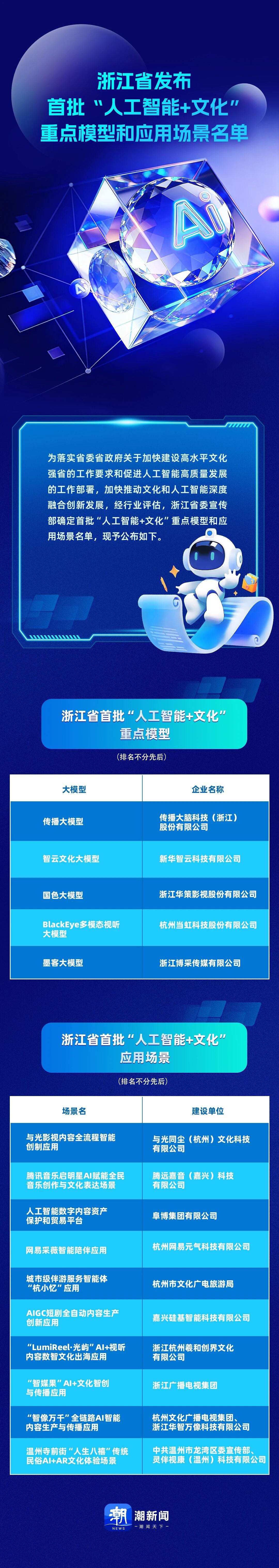 浙江省发布首批“人工智能+文化”重点模型和应用场景名单