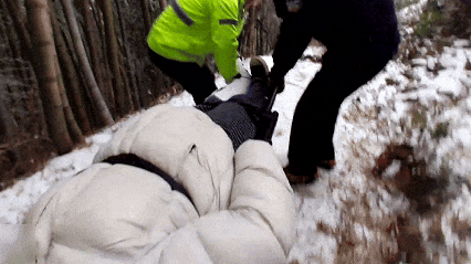 见到民警赶到夏某的同伴又惊又喜:“这么大的雪,你们怎么这么快上来啦?”饶鑫铭回答道:“我是民警,必须在第一个!”经了解,夏某是在下山途中滑倒,初步判断左脚脚踝骨折,随后赶到的医护人员对他的脚踝进行了临时固定。山路又陡又滑,用担架抬人下山非常危险,民警和救援人员互相配合稳稳抬起担架,一步一步往山下走,经过一个多小时努力,最终将夏某安全送到山下,并转送往医院治疗。