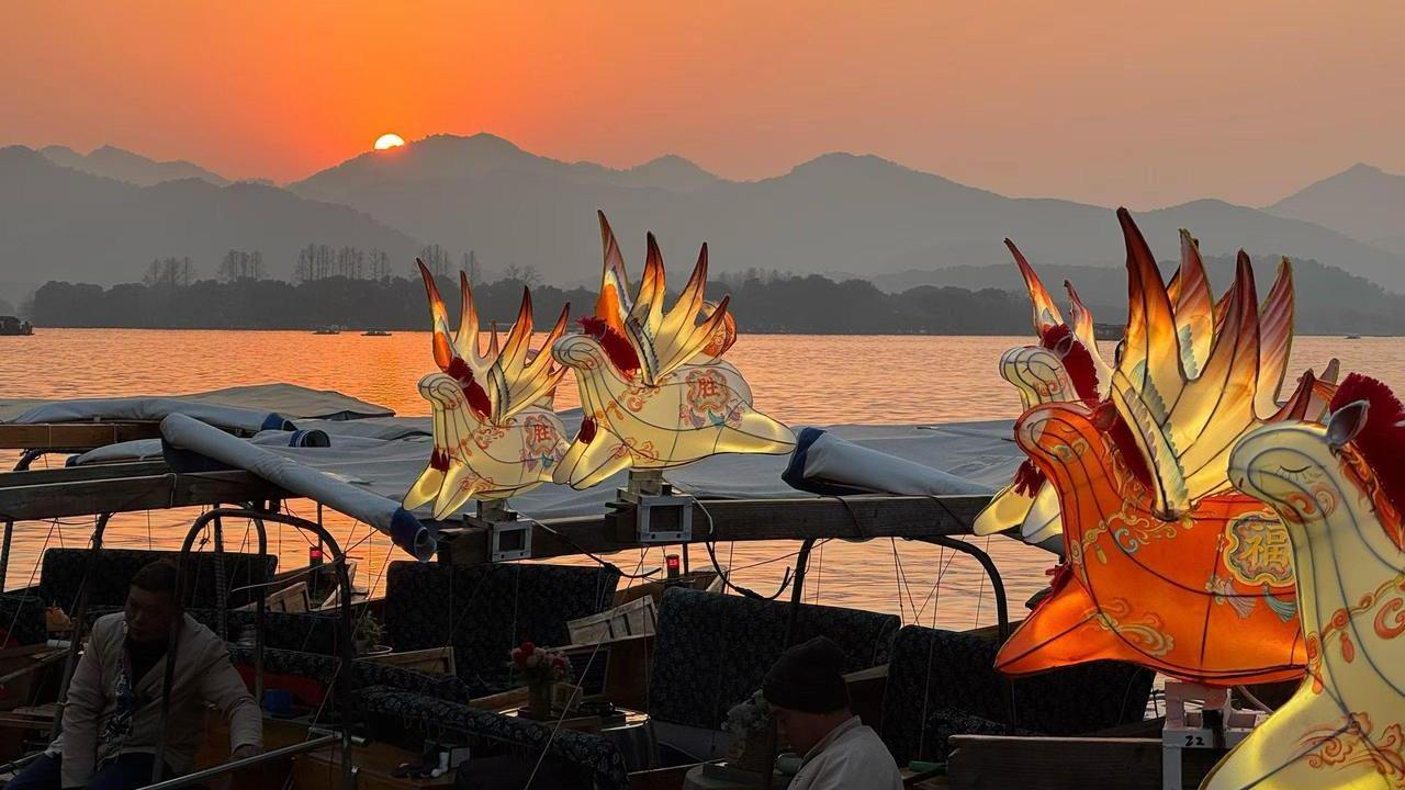 钱王祠码头,暖黄的马灯光影随着水波轻轻摇曳,西湖上新添了一抹温暖的年味儿——1月23日傍晚,“马灯福气船”正式亮相西湖,首批登上福气船的游客兴奋地表示:“开年就‘中头彩’,今年一定有好运!”传统的手划船装点上寓意吉祥的马灯,在夜色湖光中相映成趣,拉开了2026“宋”福杭州年的序幕。