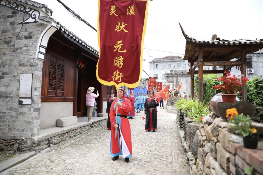 天台县三合镇的状元游街活动,同样是文化和热闹兼具。锣鼓开道,彩旗招展,文武状元身着华服、骑高头大马,率百人队伍穿古街、绕新村。武状元的豪迈奔放、文状元的儒雅内敛,丝竹管弦间穿插着舞狮和拳术,一动一静,演绎着古老村镇对文脉昌盛的美好祈愿。
