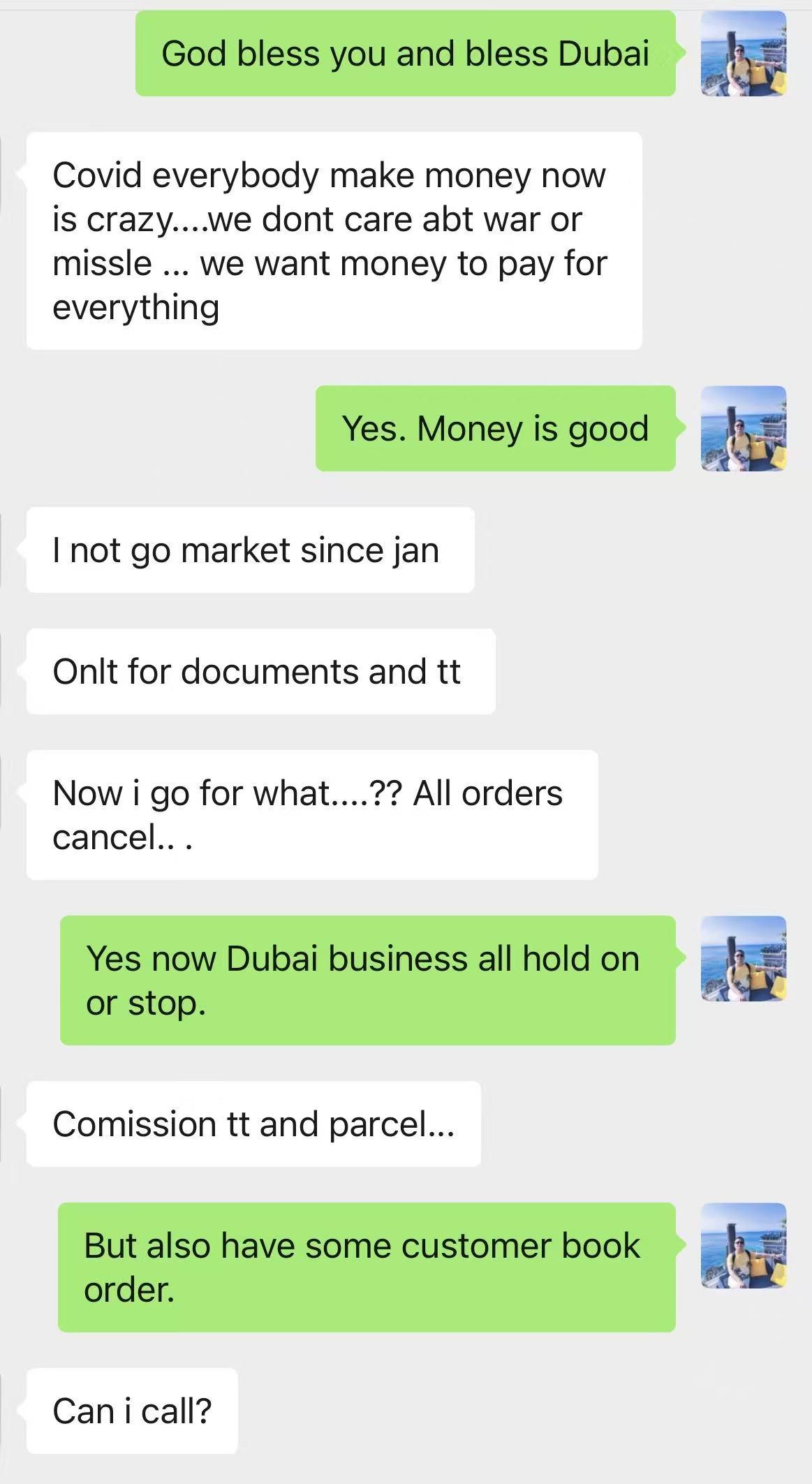 每天他仍会准时打开手机,与迪拜客户聊天,试图从中捕捉局势的蛛丝马迹。那些老客户们还在微信上问候,聊聊国内原材料涨了多少,谈谈那边安全情况怎么样。