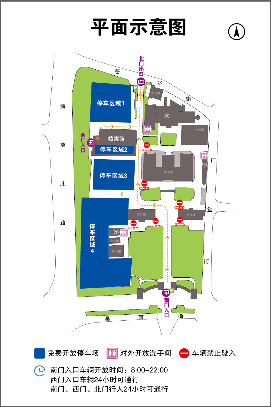 4.如遇特殊情况需临时取消停车场,车主应积极配合自觉驶离;同时,为了不影响工作日行政中心正常工作秩序,临时停放车辆请于假期最后一天22时前驶离。
