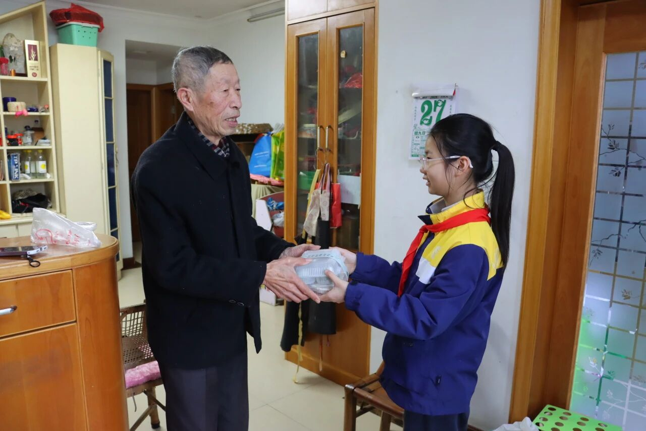 带着亲手制作的青团,少先队员代表与社区工作人员一同走访慰问社区独居老人。队员们礼貌问好,陪伴老人聊天,询问身体状况和生活起居,用稚嫩的声音表达对长辈的关心与敬意。