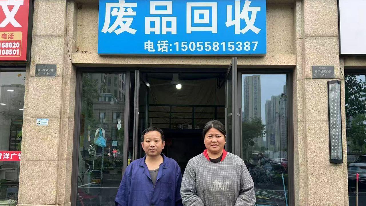 店主刘冬冬是安徽人,原本在上海的一家造船厂工作。5年前,他经朋友介绍,和妻子罗三到杭州萧山开了这家废品回收店,以此养活在老家上学的3个孩子。