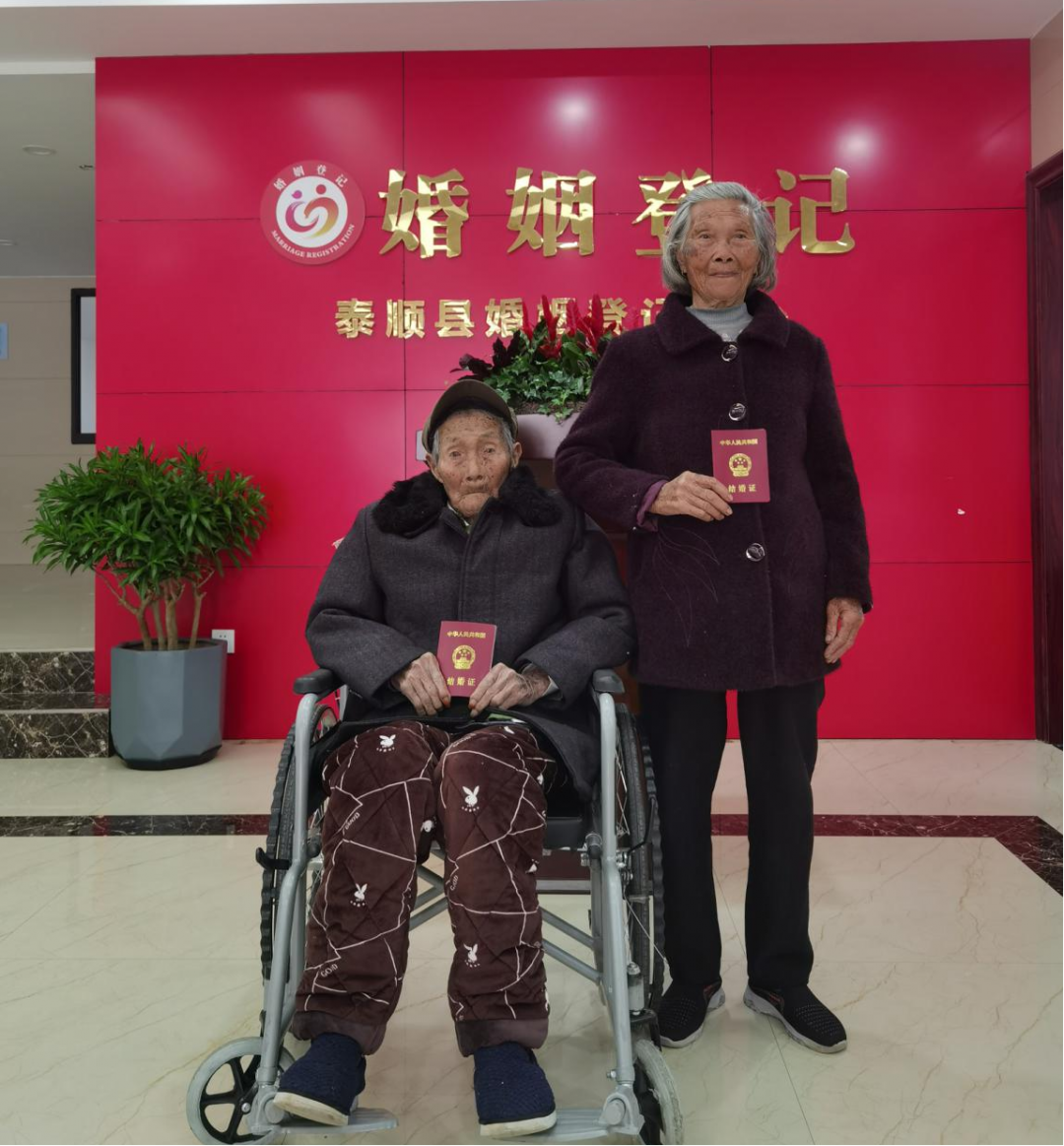 4月7日,浙江省温州市泰顺县婚姻登记中心为一对特殊的“新人”补办了结婚证,完成了他们多年的心愿。这对“新人”就是蔡起茶和他的妻子薛珠,蔡起茶是原泰顺县雪溪乡武岭村村党支部书记,103岁高龄的他是一名抗美援朝老兵,曾多次被授予英模表彰等荣誉。
