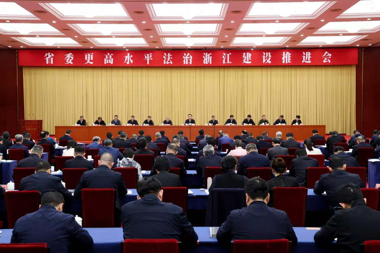 浙江在线4月23日讯(记者 余勤 陆乐)23日上午,省委更高水平法治浙江建设推进会召开。省委书记王浩出席会议并讲话。他强调,要全面贯彻落实习近平法治思想和习近平总书记考察浙江重要讲话精神,深入践行“八八战略”,牢固树立和践行正确政绩观,牢牢扭住高质量发展建设共同富裕示范区这一核心任务,全面推进科学立法、严格执法、公正司法、全民守法,更加注重法治与改革、发展、稳定相协同,更加注重保障和促进社会公平正义,全力打造各领域法治化实践典范,推动法治建设各项工作走在前、作示范,为取得“决定性进展”、率先呈现“生动图景”提供有力法治保障,为全面依法治国、建设法治中国贡献更多浙江力量和浙江经验。