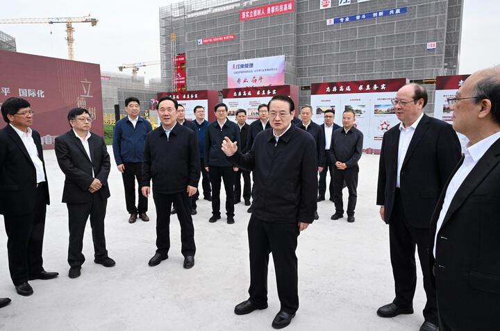 4月11日上午,省委书记易炼红,省委副书记、省长王浩考察宁波东方理工大学(暂名)项目施工现场,了解学校建设进展情况。记者 胡元勇 摄