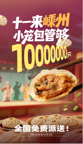国庆期间,总计一千万只地道嵊州小笼包将通过“线上抢券、线下来嵊、包邮到家”的方式免费送达全国消费者。活动主办方介绍,“此次活动是依托扎实的产业基础,响应促消费号召,让利于民、回馈市场的具体举措。”