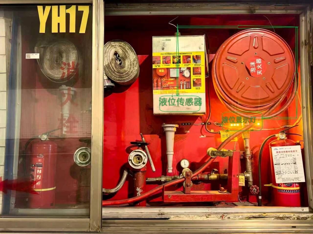隧道消防中,泡沫液作用关键,需维持 25-30 升标准液位。以往,通过人工步检观测液位管以确认状态的方法,其准确性易受液位管自身各类问题的影响,从而造成误判;依赖每月步检或抽检,周期长、覆盖有限,泡沫液箱漏液、盘管漏水难以及时发现,而盘管漏水会降低软管出水压力,缩短喷射距离,影响灭火效果。同时,隧道环境复杂,巡检员作业时间越长,安全风险越高。