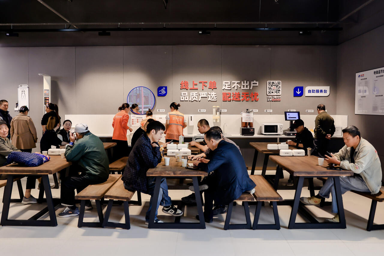 值得一提的是,乍浦店延续物美“学习胖东来自主调改”的核心特色,在便民服务和员工福利上也做了大量优化。门店购物动线优化,主通道拓宽,货架高度调低,生鲜区的肉类和海鲜免费提供切片、切丝、宰杀、去内脏等加工服务;此外,新设的便民服务区同步配备顾客休息区、免费直饮水、自助茶饮、充电宝租借、宠物临时寄存以及血压等健康指标测量设备,进一步提升了顾客购物的便利性与舒适度。另据了解,门店员工薪资较调改前上涨30%至50%,入职即享10天带薪年假,并可参与门店利润分红,这也与物美在上周供应商大会上所阐释的“以人为本”的企业文化高度契合——“物美发自内心地对员工好,从而转化为员工发自内心地对顾客好,最终沉淀为顾客发自内心地信任物美,形成清晰的闭环。”