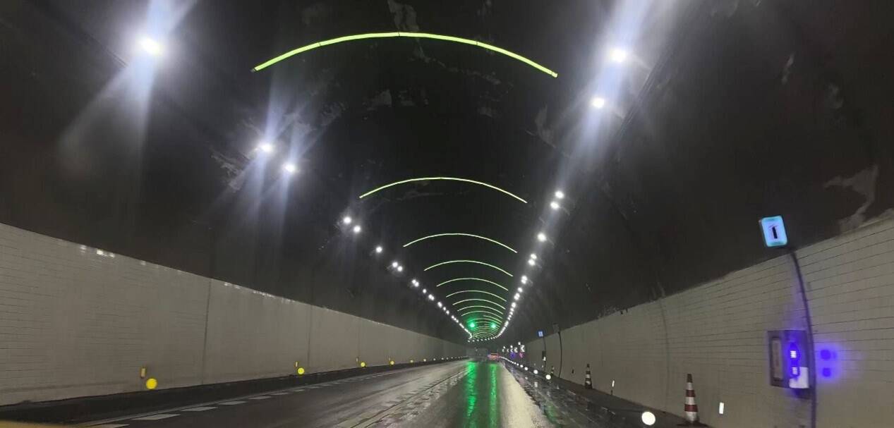 据浙江省交通集团高速公路温州管理中心机电负责人介绍,“彩虹隧道”并非单纯的视觉创意,而是针对实际行车需求的安全升级。该隧道丽水方向后半段有明显转弯,为提升驾驶体验、推进事故预防性管理,管理部门在隧道顶部内侧安装了38条LED灯带。这些灯带按12米间距均匀布置,采用硅胶材质,兼具柔韧易造型、发光均匀、可调节的特性,且防水等级达IP65,形成了一套连贯的视觉引导系统。