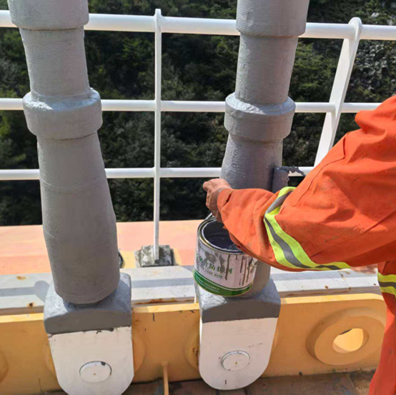相关成果已实现规模化工程应用,2024年9月至2025年1月,在岱山县G526嵊泗线官山大桥维修加固工程中,应用OTC包覆防腐技术对桥梁钢护栏接头及螺栓法兰盘等易锈蚀部位进行防护,覆盖面积913平方米;2025年7月至9月,该技术进一步应用于秀山大桥维修工程,对吊索上下锚头、主缆检修道扶手绳立柱等关键节点实施长效防护,防护面积989平方米。上述应用不仅有效延长了结构服役寿命,更使防腐总投入较传统方案降低40%以上,经济与社会效益显著。